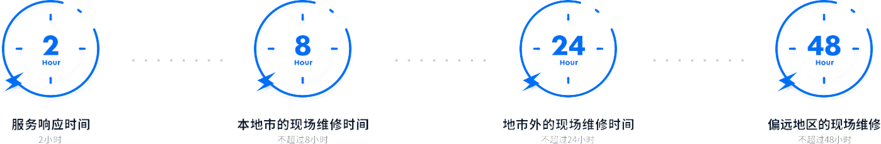 我方承諾在接到需方反映產(chǎn)品問顧后,及時溝通處理,收到用戶的通知后,將以最快的方式進(jìn)行響應(yīng)支持,根據(jù)公司(或分公司)距用戶的距離及交通便利情況及用戶的方便情況確定服務(wù)方案。平均服務(wù)響應(yīng)時間為2小時,在本地市的現(xiàn)場維修到達(dá)時間不超過8小時,地市外的現(xiàn)場維修到達(dá)時間不超過24小時(大中城市),部分交通不便或邊地遠(yuǎn)地區(qū)的現(xiàn)場維修到達(dá)時間不超過48小時。